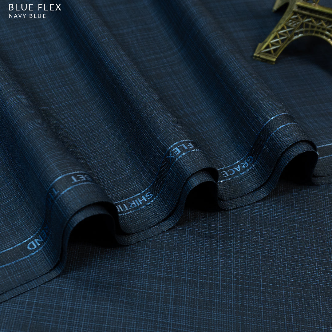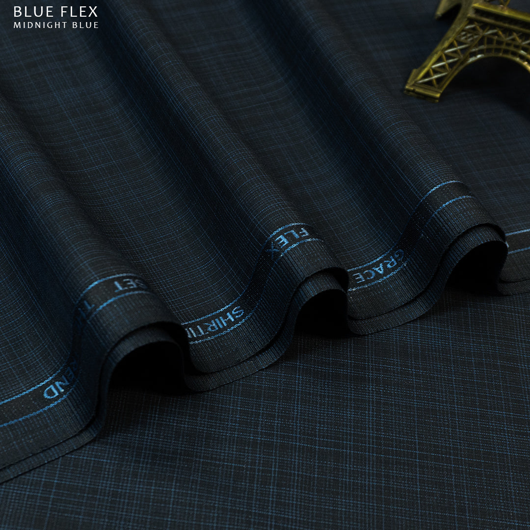 Experience ultimate comfort and style with Blue Flex - Blended Winter Textured Wash & Wear. This winter essential comes in two special shades of Navy Blue & Midnight Blue. Say goodbye to wrinkles and hello to effortless fashion with this must-have for the season.