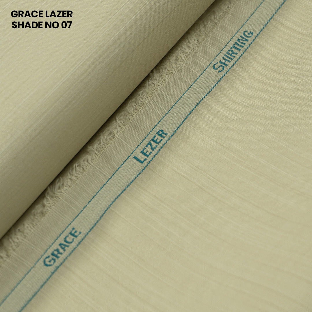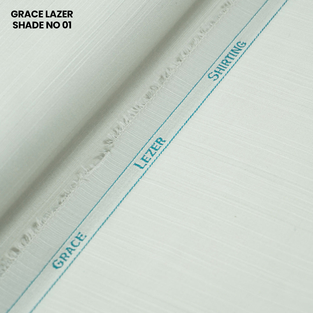 Grace Lazer by Hilltop Fabrics is a premium textured Wash & Wear fabric crafted for versatility, comfort, and timeless style. Featuring a smooth handfeel with a subtle woven texture, this fabric offers a refined appearance ideal for both formal and semi-formal wear.
