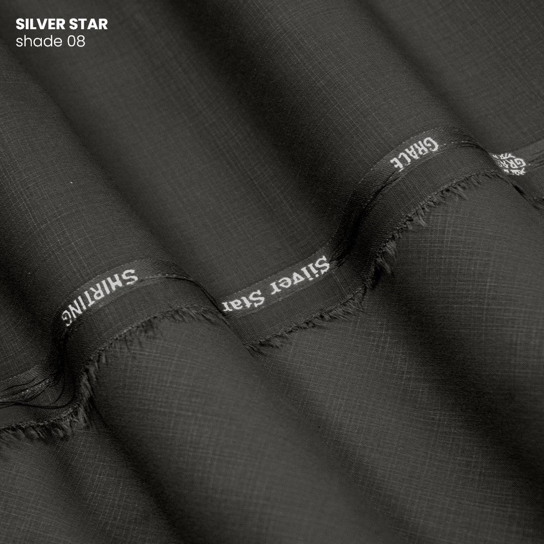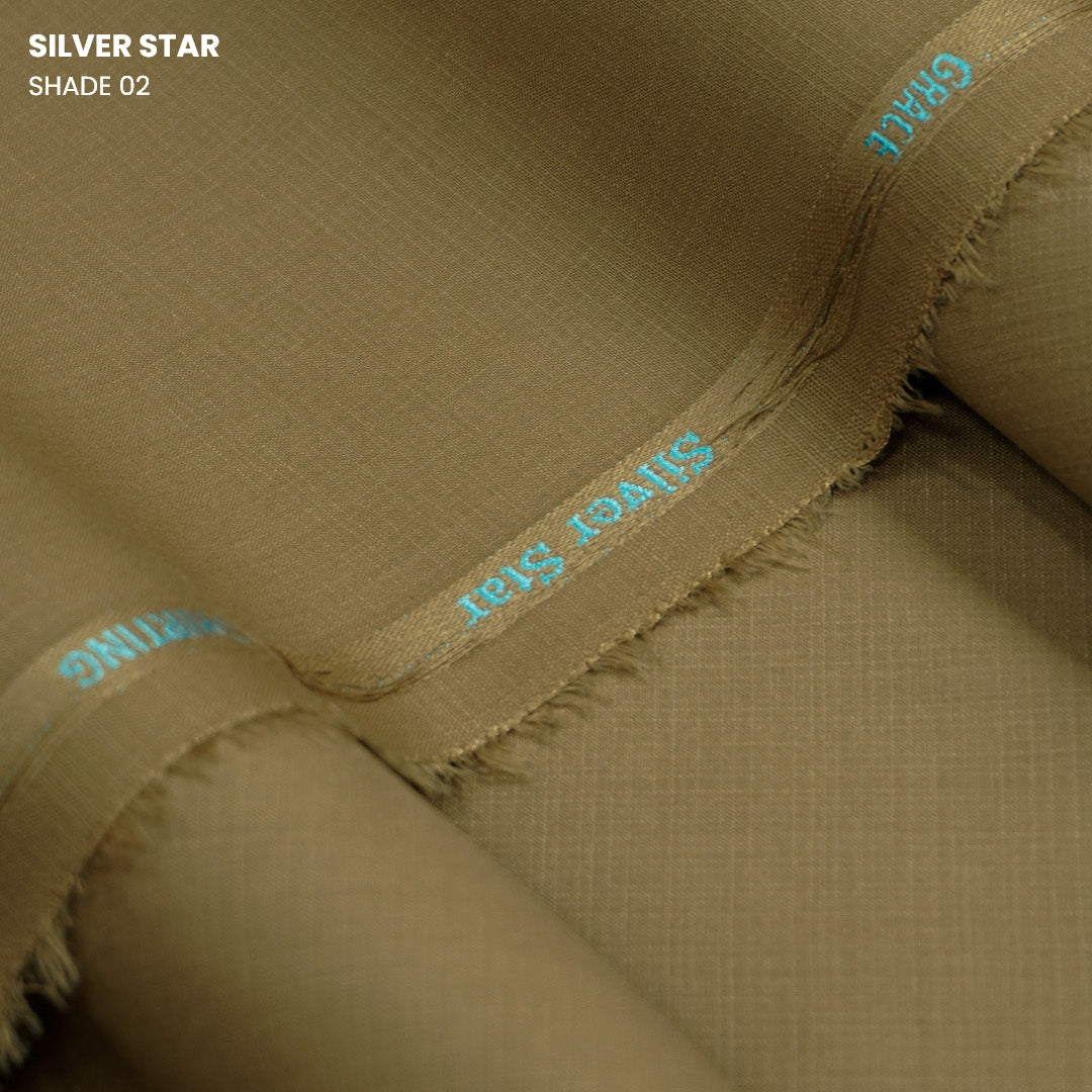 Silver Star Wash & Wear combines effortless care with refined elegance. This self-textured fabric delivers a sophisticated surface that resists wrinkles, making it ideal for busy professionals who value both style and practicality. The wash-and-wear finish means minimal ironing and maximum durability, while the subtle texture adds visual depth to any garment. Perfect for tailored suits, shirts, and everyday wear that demands both comfort and polish.